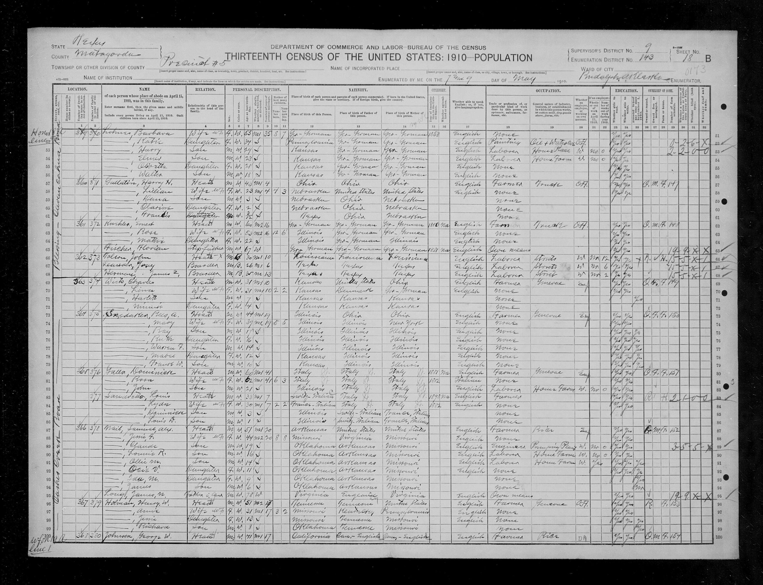 Census • United States Census, 1910, 1920, 1930, 1940 – John Tolson